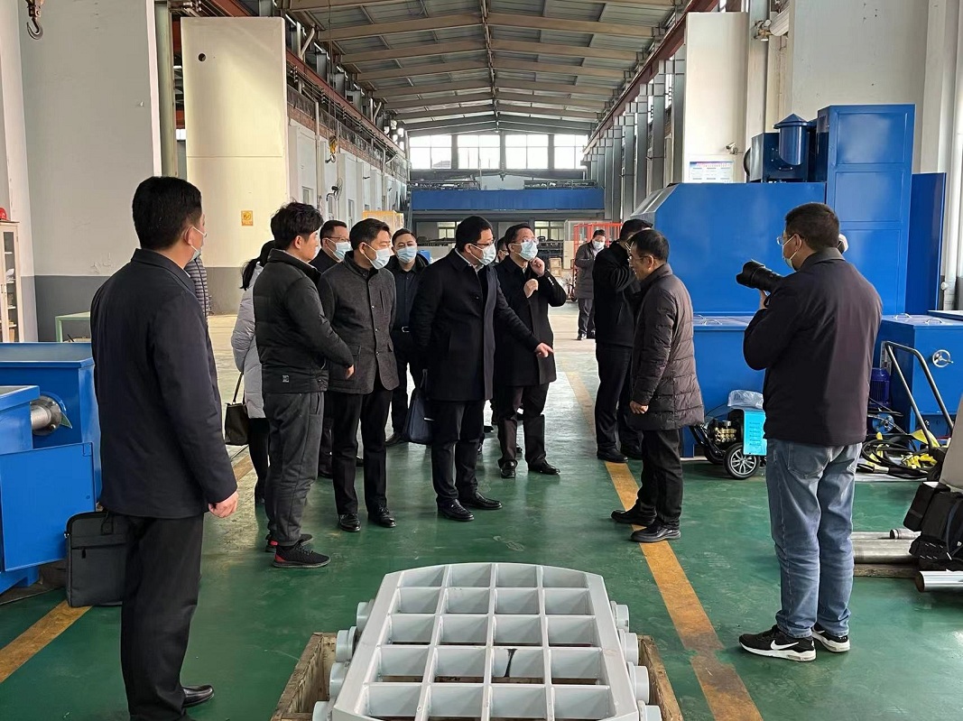 2022年2月10日上午11时许,泰州市海陵区区委书记孙群书记等领导一行来到我司进行走访调研,针对我司年度发展规划提出指导性意见,我司董事长丁克芳先生及董事会成员陪同视察!