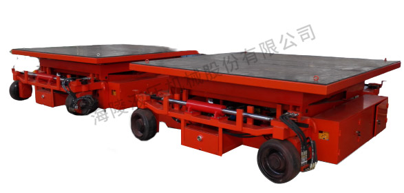 设备组成为液压泵站驱动的升降平台,升降平台上工作台面可实现前应移动及旋转,整个平台可实现纵横向的行走,由电机驱动实现行走功能,可以自由运行,即能够实现纵向、横向。